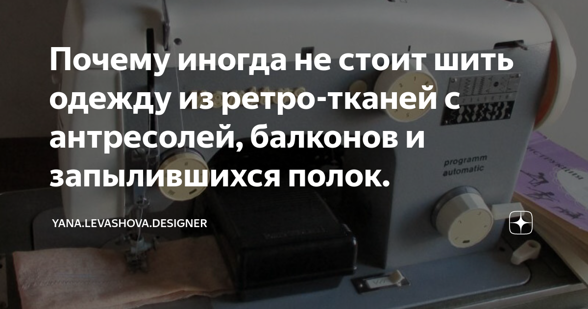 Почему иногда не стоит шить одежду из ретро-тканей с антресолей, балконов и запылившихся полок. Я Fashion Дизайнер с более чем 10 летним опытом работы в сфере пошива одежды. Как мужской, так и женской. А так же профильным образованием. Меня зовут Яна Левашова.