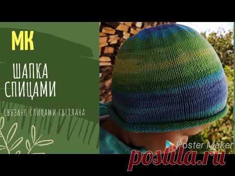 Шапка спицами подробный МК, детская шапка вязание для начинающих, простая шапка из Alize bеlla batik
