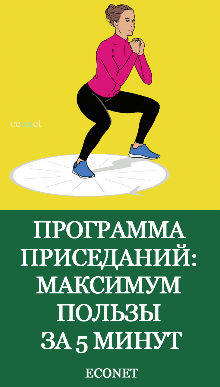 Программа приседаний: максимум пользы за 5 минут Приседания являются самыми естественными для нашего тела. Но только выполненные правильно упражнения, помогут сформировать стройные ноги, подтянутые бедра и рельефные ягодицы. Какие приседания дадут максимальный эффект?