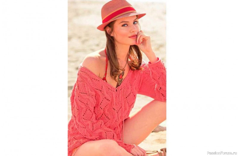 Пуловер со структурным узором | Вязание для женщин спицами. Схемы вязания спицами Пуловер со структурным узором - свободная вязка и шнуровка внизу горловины. Связанный спицами пуловер пригодится вам не только в этом сезоне. Размеры: 38/40 (42) 44/46 Вам потребуется: пряжа (50% хлопка, 50% полиакрила; 97 м/50 г) - 650 (700) 750 г розовой; спицы № 4 и 4,5; круговые...