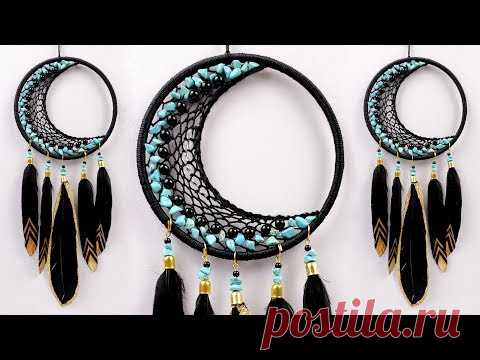 How to make CRESCENT MOON wall hanging Dream Catcher || Room Decor Ideas | DIY Macrame Wall Hanging