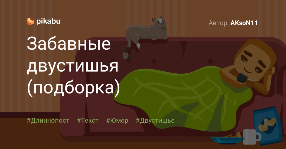 Забавные двустишья (подборка) Нашел у себя на странице вк. не надо класть в салаты гренки они царапают лицо * почти пришли сказал сусанин кокос срывая на ходу * посредством головокруженья передвигался колобок * пришли альцгеймер с