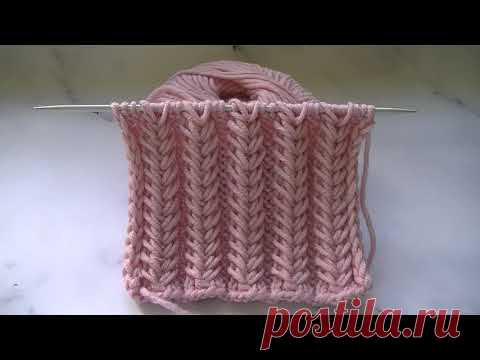 Вяжем узор резинка колосок спицами.Узор для шапки.