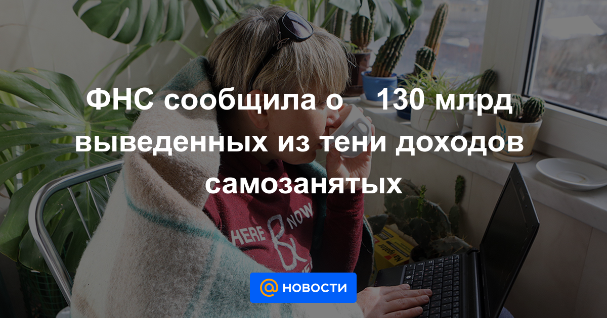 ФНС сообщила о ₽130 млрд выведенных из тени доходов самозанятых По данным ФНС, число зарегистрировавшихся самозанятых в России достигло 1 млн человек. Налоговики увидели 130 млрд руб. их доходов, выведенных из серой зоны. Ряд фирм переводят в самозанятые сотрудников, получавших зарплату в конверте.