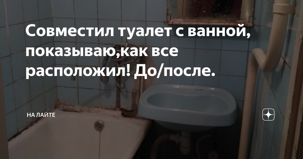 Совместил туалет с ванной, показываю,как все расположил! До/после. Всех приветствую, друзья! Сегодня хочу поделиться с вами нашей перепланировкой.Во время ремонта, многие думают оставить санузел раздельный или совмещенный. Это уже конечно на любителя, кто как любит, у каждого варианта, есть свои плюсы и минусы. Когда вы планируете ремонт и перепланировку, то всегда исходите из своих требований и инженерных возможностей квартиры. Если изначально санузел в вашей
