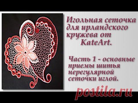 Нерегулярная игольная сеточка - основные приемы шитья. A net sewn with a needle for Irish lace.