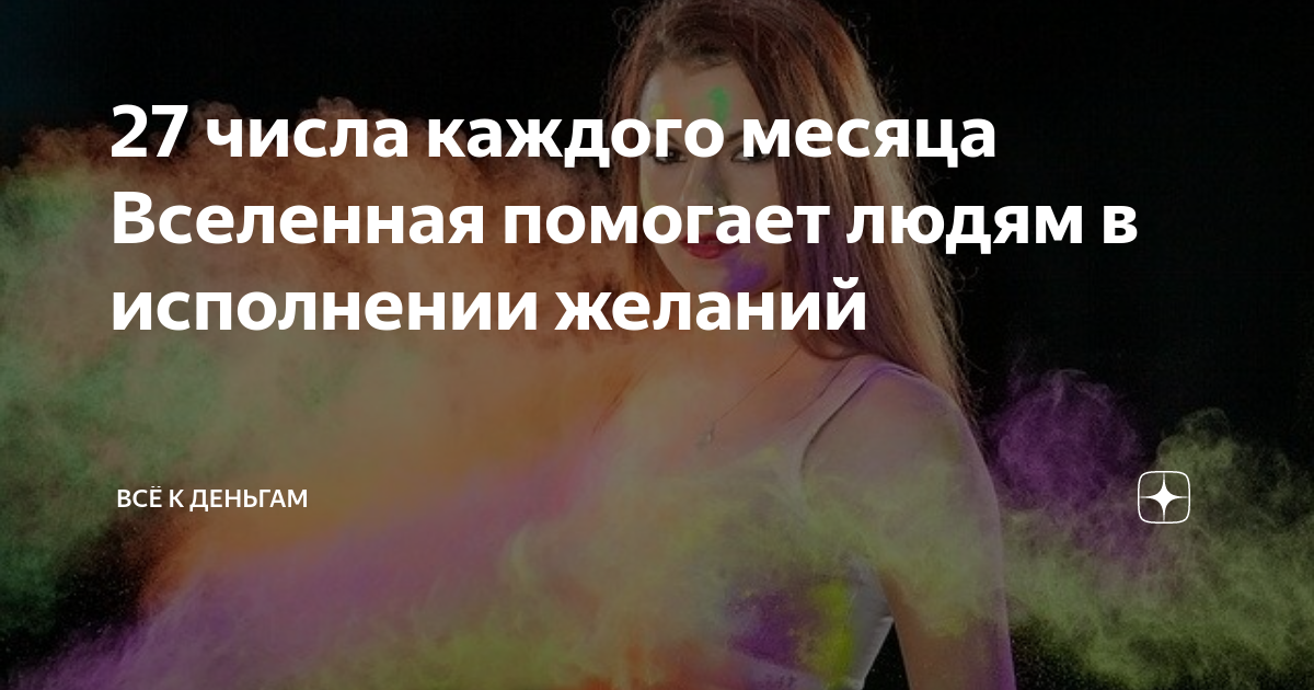 27 числа каждого месяца Вселенная помогает людям в исполнении желаний Этот метод исполнения желаний был придуман 30 лет назад.