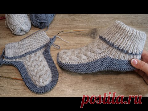 Бесшовные следки спицами с королевской косой 👑 Homemade knitted slippers 👌🏻