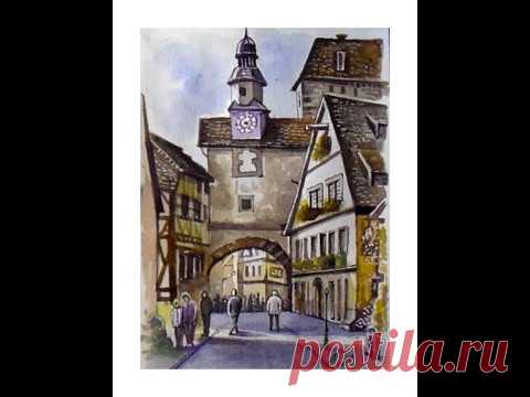 Рисуем европейский город линером и акварелью/Draw a European city with a liner and watercolors