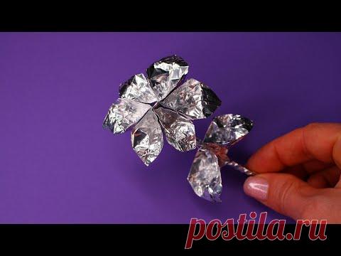 DIY Цветы из фольги. Как сделать простой и красивый цветок. Поделки из фольги своими руками