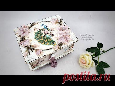 Decoupage # a box with a peacock and magnolia #CADENCE # DIY tutorial...