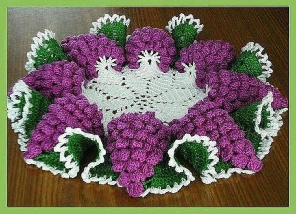 Объемная салфетка "Виноградная гроздь" крючком Объемная салфетка "Виноградная гроздь" крючком будет особенно красива с вазой с фруктами посередине.