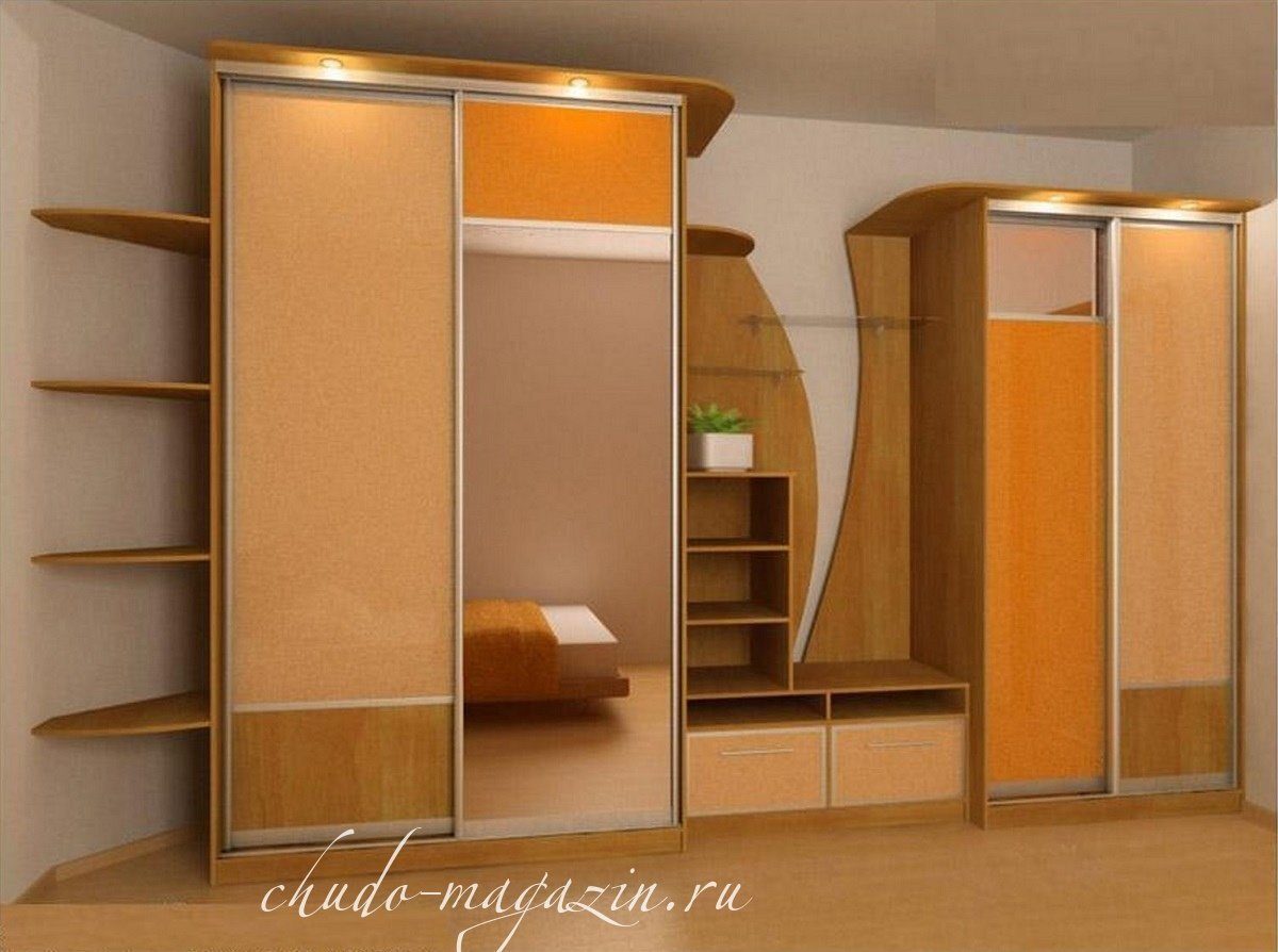 Фигурный шкаф купе для прихожей или гостинной комнаты: фото, дизайн
