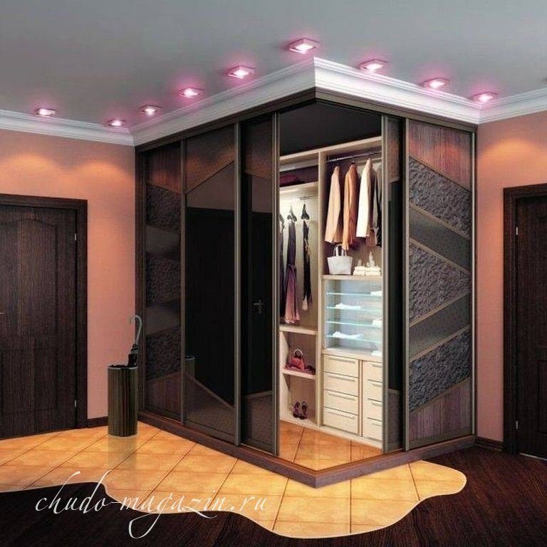 Угловой встроенный шкаф купе с кожей на заказ: материалы, фото, дизайн.