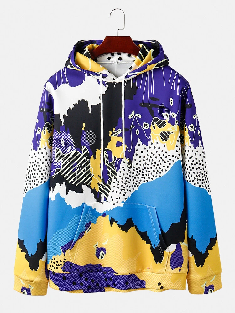 Mens Allover Colorful Abstract Print Casual Drawstring Hoodies With Kangaroo Poc - US$29.99