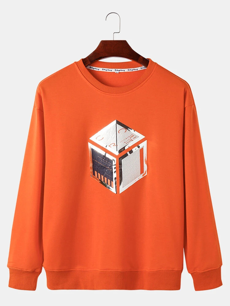 Mens 100% Cotton Graphic Chest Print Solid Color Casual Pullover Sweatshirts - US$25.99