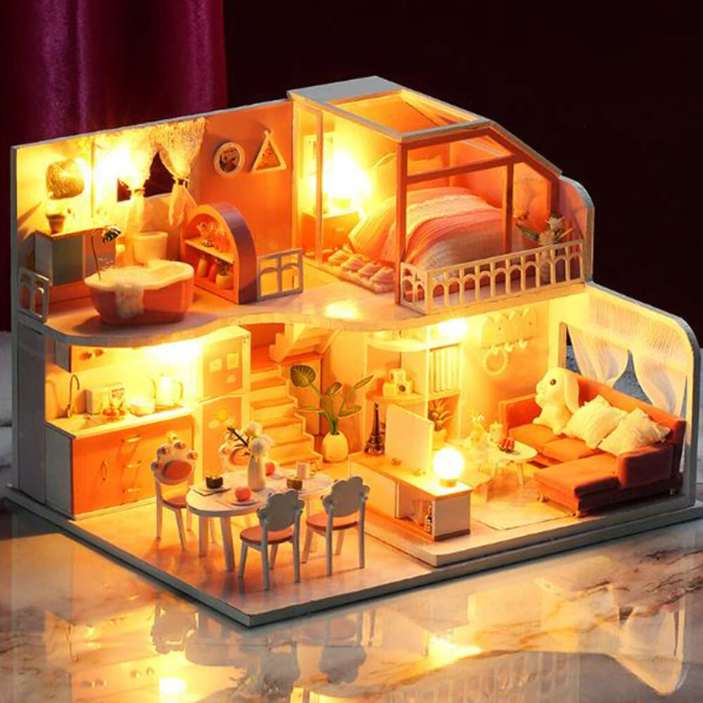 Iie create k056 half summer time theme diy doll house model assembled toys with lights, dust cover, and furniture Sale - Banggood.com