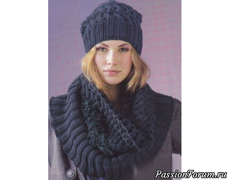 Вязаная шапка и снуд "stylish" | Вязание спицами аксессуаров Размер: шапка 56-58 размер, высота – 28 см, снуд 83х51 см.Для вязки потребуется: Пряжа Extra Merino Schachenmayr - 10 мотков (для снуда - 7 мотков, для шапки - 3 мотка);