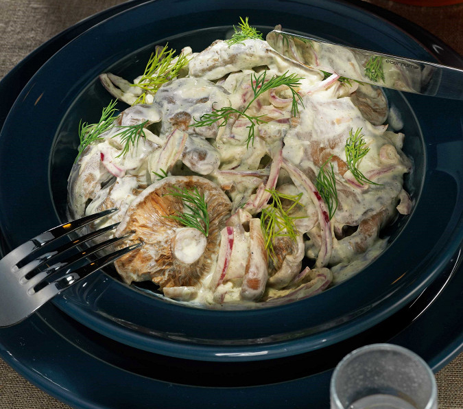 Рыжики в сметанно-горчичном соусе Цикл - Интересные рецепты от ВСЁВСЁ.РУ ----------------------- ИНГРЕДИЕНТЫ НА 4 ПОРЦИЙ Соленые рыжики - 500 г Сметана - 200 г Красный лук - 2 головки Белый винный уксус - 50 мл Гречишный мед - 1 чайная ложка Дижонская горчица - 1 столовая ложка Тертый хрен - ½ столовой ложки .......... Весь рецепт в наших соц сетях Приятного аппетита