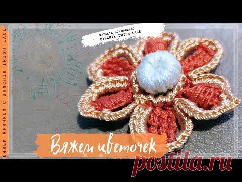 Вяжем крючком красивый цветок. Уроки по вязанию крючком от Bynchik Irish Lace. Crochet tutorial.