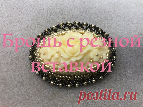 Бисерная брошь с резной вставкой I Как закрепить вставку для броши