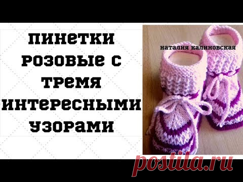 Розовые пинетки, связанные тремя узорами