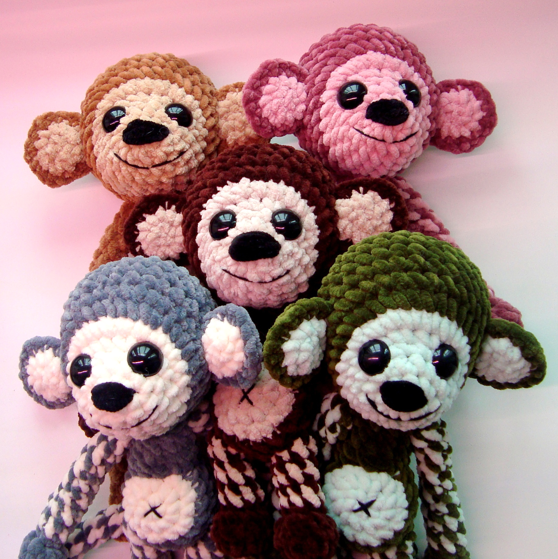 PDF Плюшевая обезьянка крючком. FREE crochet pattern; Аmigurumi animal patterns. Амигуруми схемы и описания на русском. Вязаные игрушки и поделки своими руками #amimore - Обезьяна из плюшевой пряжи, обезьянка, мартышка.