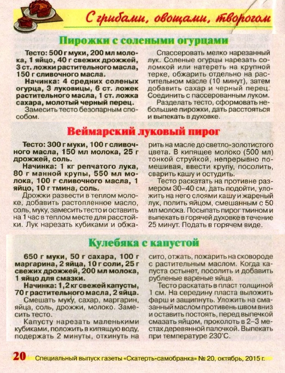 Пирожки с солеными огурцами. Веймарский луковый пирог. Кулебяка с капустой
