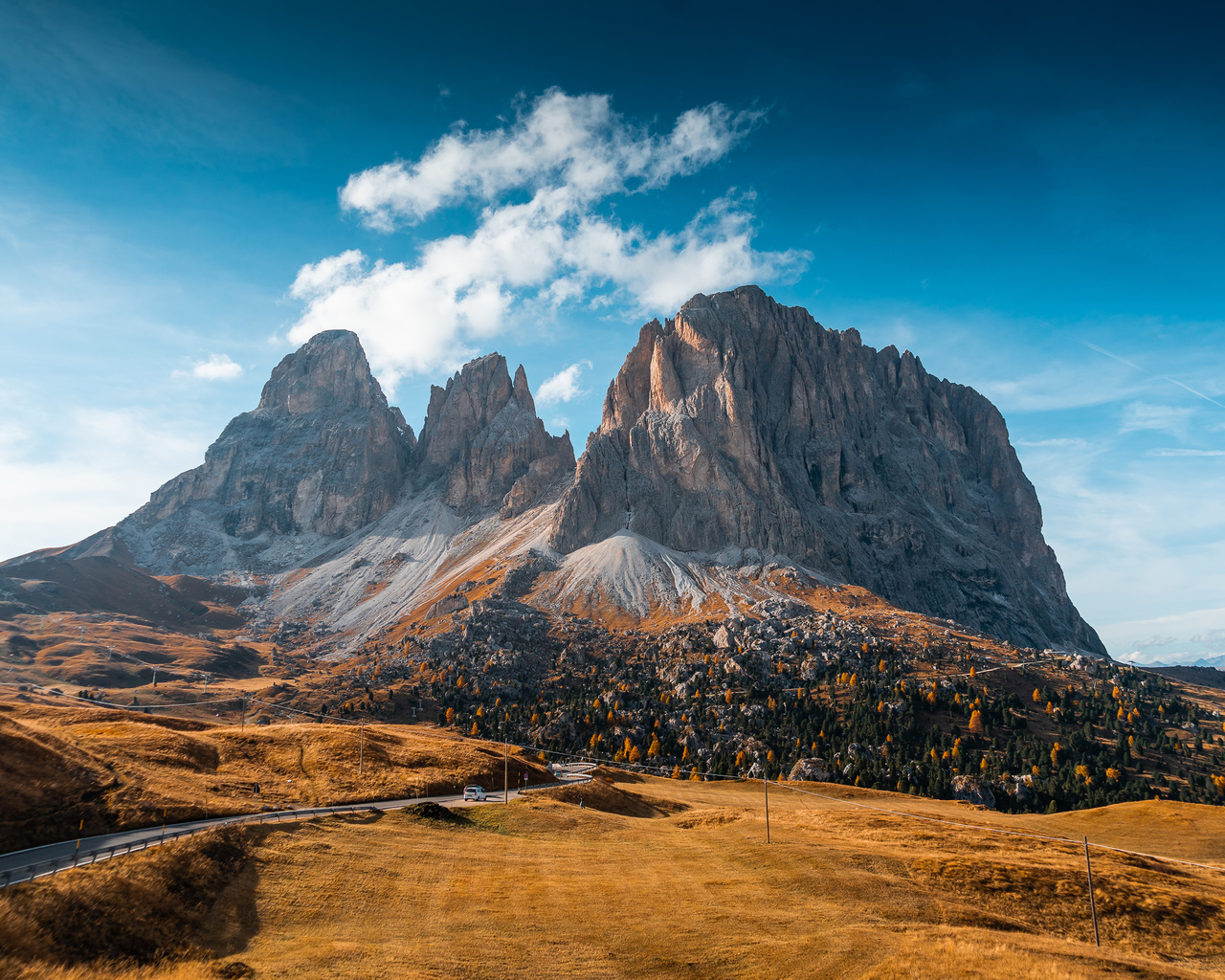 Картинки горы, осень, италия, дорога, val gardena, dolomites, природа - обои 1280x1024, картинка №413000