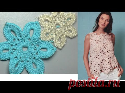 Цветочный мотив крючком для красивой кофты Простой мотив вязаный крючком