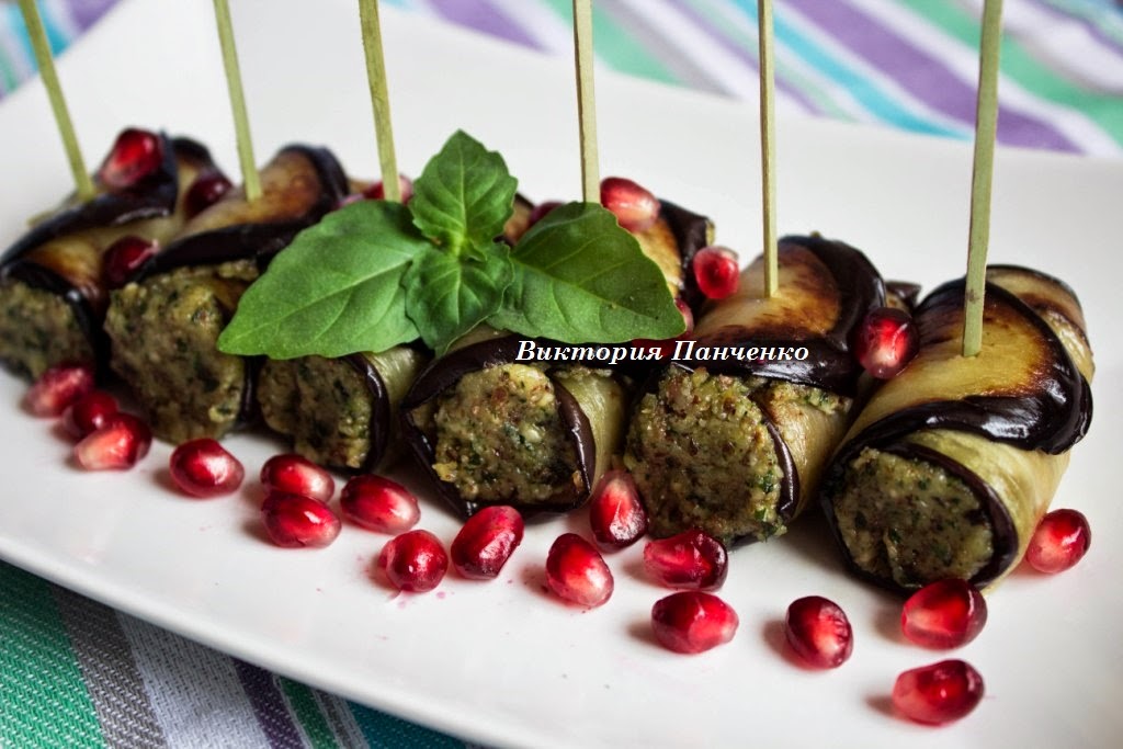 РУЛЕТИКИ ИЗ БАКЛАЖАНОВ С ОРЕХАМИ
