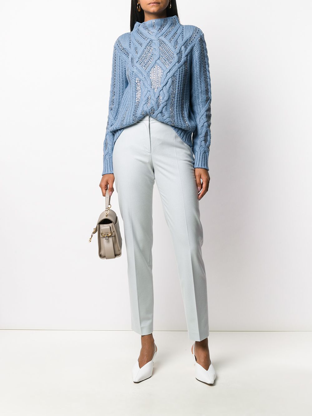 Blue Ermanno Scervino crystal-embellished cable knit jumper - Farfetch