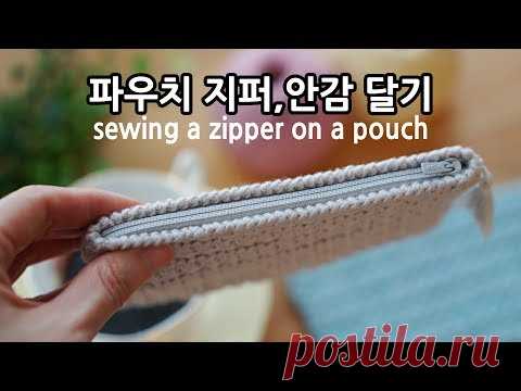 코바늘 파우치 지퍼 안감 달기 sewing a zipper on a pouch_by아델 - YouTube