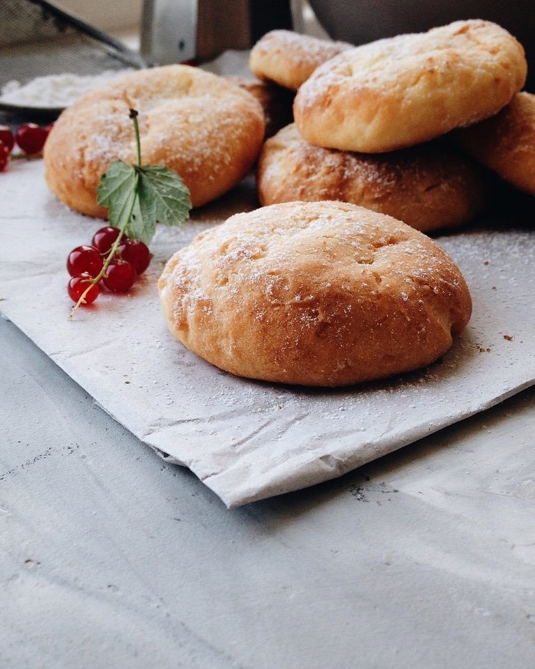 Сырники в духовке Ингредиенты: Творог (плотный) — 350 г Яйцо — 1 шт. Сахар — 3 ст. л. Мука — 3–4 ст. л. Сода — 0,25 ч. л. Сок лимона — 1 ст. л. Ванильный сахар — 1 ч. л. Соль — 1 щепотка Сметана или йогурт — опционально Приготовление: 1. Творог, яйцо, сахар и соль смешать при помощи блендера до однородной массы. 2. Соду погасить соком лимона и добавить к творожной массе. 3. Муку просеять и, постепенно добавляя к творожной массе, замесить тесто. 4. Взять кусочек теста р...