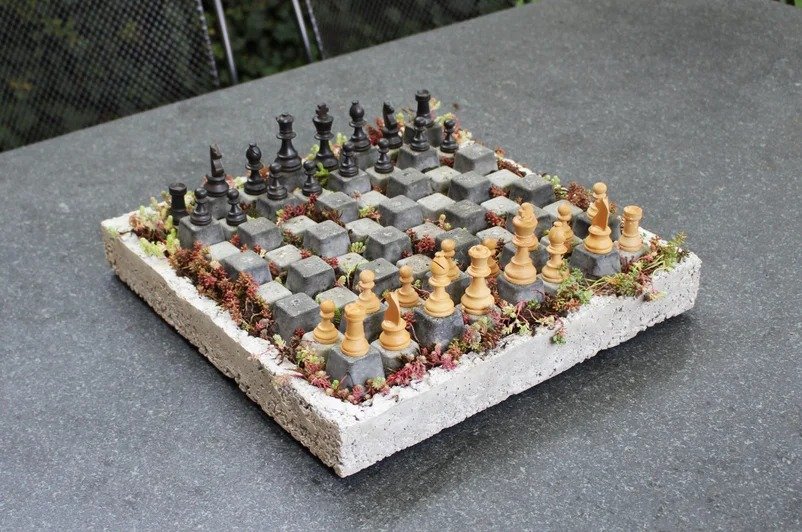 Садовая бетонная шахматная доска Такая шахматная доска будет отличным украшением для вашего сада. Конечно к ней бы еще и бетонные шахматные фигуры, но об их изготовлении мастер обещает рассказать в другой статье. Инструменты и материалы:-Ячейки для рассады - 64 шт;-Ведро;-Цементная смесь;-Вода;-Черная