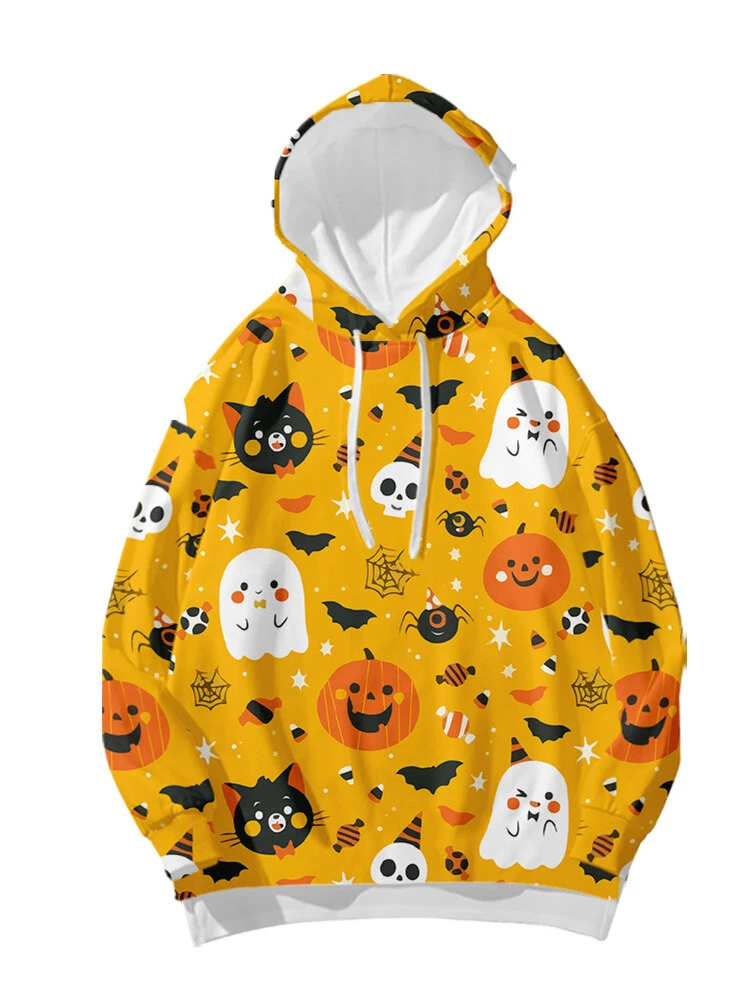 Women Halloween Funny Animal Skull Printed Loose Drawstring Hoodies - US$22.99