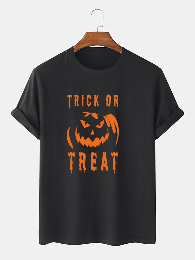 Mens 100% Cotton Letter & Pumpkin Print Halloween Short Sleeve T-Shirts - US$12.99