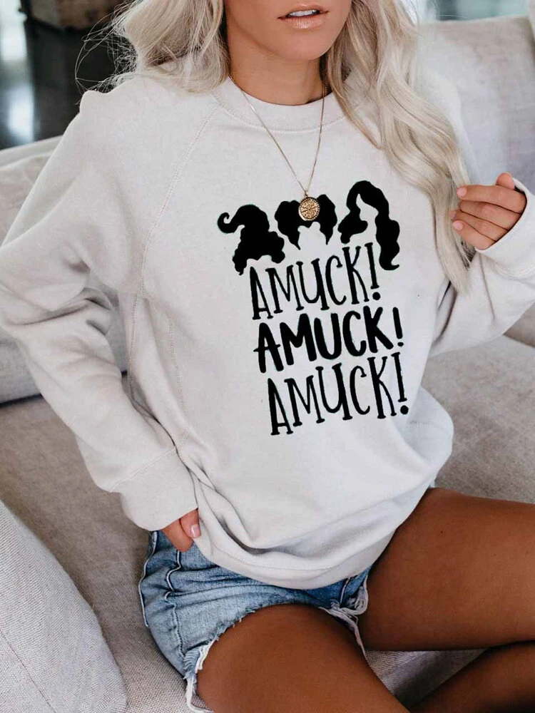 Women Halloween Letter Print Round Neck Casual Pullover Sweatshirts - US$16.99