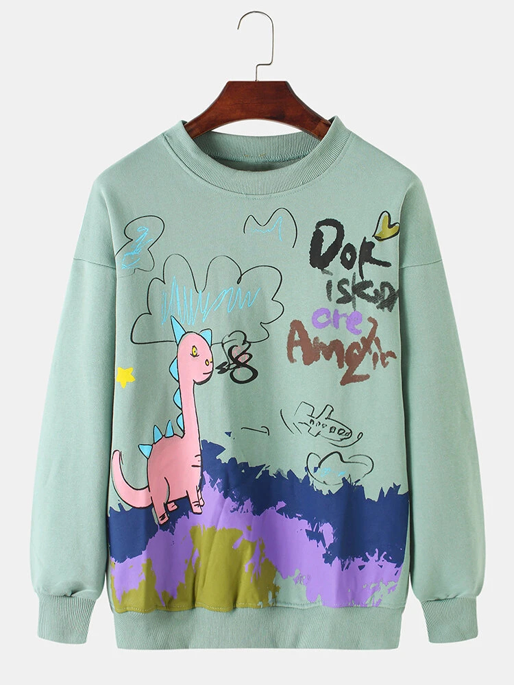 Mens Funny Graffiti Print Drop Shoulder Round Neck Long Sleeve Pullover Casual S - US$29.99