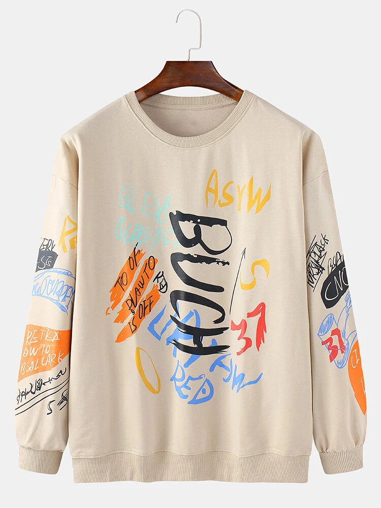 Mens Graffiti Print Long Sleeve Pullover Cotton Casual Sweatshirts - US$27.99