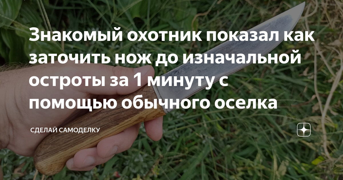 Знакомый охотник показал как заточить нож до изначальной остроты за 1 минуту с помощью обычного оселка Ножи тупятся постоянно, как бы аккуратно мы ими не пользовались. И не важно, кухонный это нож или охотничий. Раньше я точил ножи на простом наждаке, подводил на гриндере, а затем, шлифовал на войлочном круге с пастой ГОИ. Считал что делаю правильно, пока не побывал у меня в гостях один старый охотник.