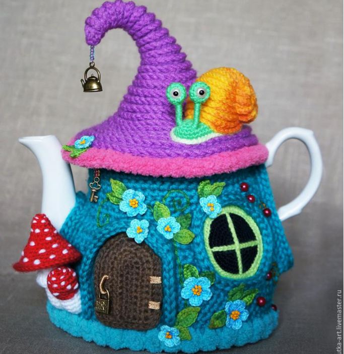 Как связать грелку на чайник крючком "Домик". Схемы и мастер-класс