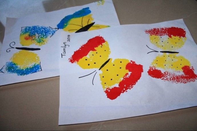 Рисуем с детьми разных бабочек губкой