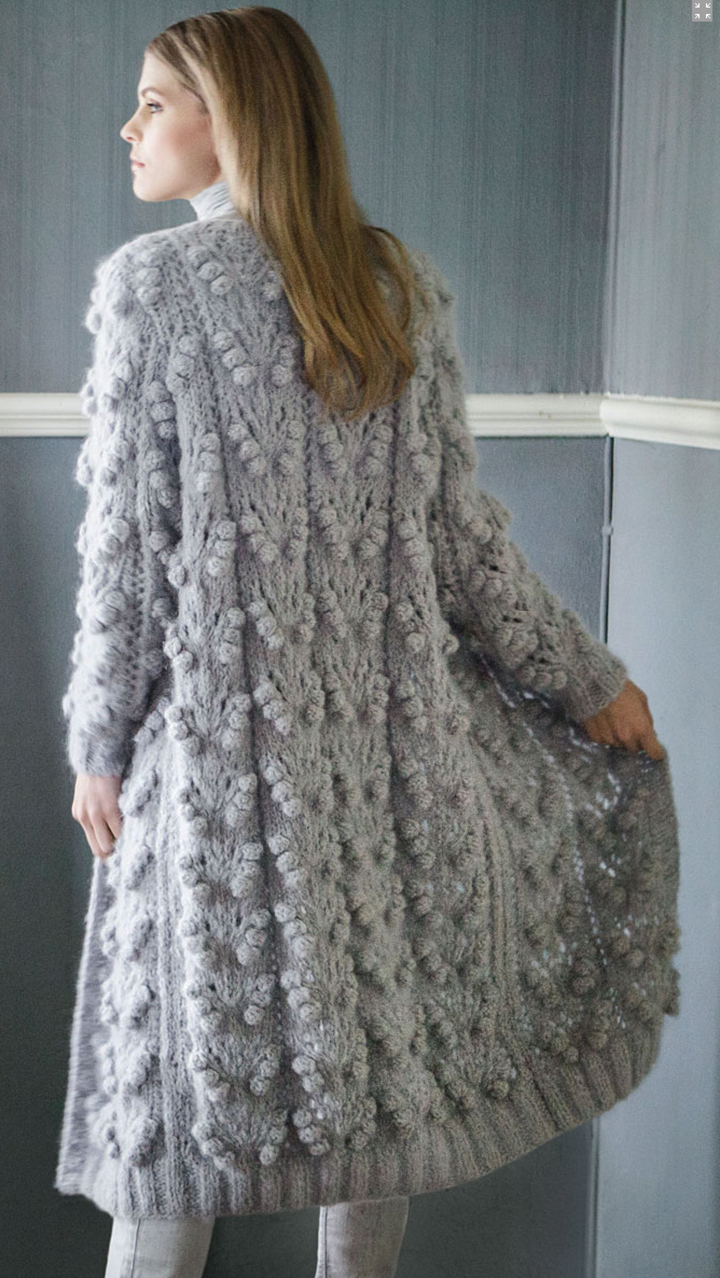 Пальто с узором из шишечек спицами — Shpulya.com - схемы с описанием для вязания спицами и крючком