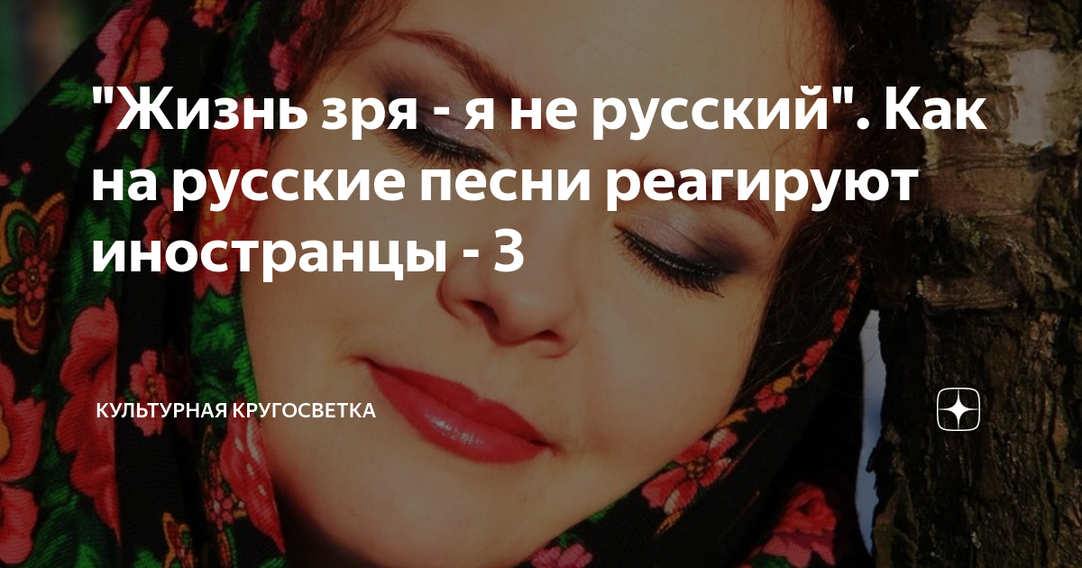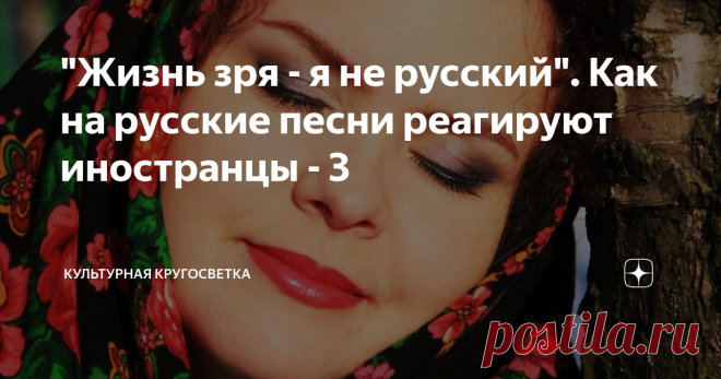 "Жизнь зря - я не русский". Как на русские песни реагируют иностранцы - 3 Известно, что национальное песенное творчество собирает и кристаллизует основные архетипические народные черты. По нему мы можем идентифицировать ту или иную культуру. Прислушиваясь к песням разных народов, мы будто читаем их историю, их мысли и чаяния. Наши русские песни - своеобразная дверь в подсознание русской души. Этим незатейливым словам и мотивам десятки лет. А ведь какую душевную бурю