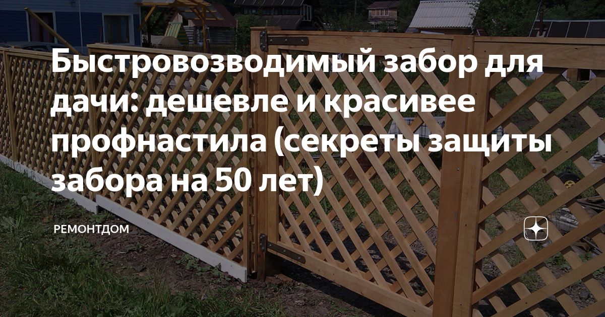Быстровозводимый забор для дачи: дешевле и красивее профнастила (секреты защиты забора на 50 лет) Если вы решаете, какой забор поставить на дачу, присмотритесь к этому варианту. Сейчас становится популярно среди дачников делать забор из реек. Это тонкие планки из разных пород дерева.