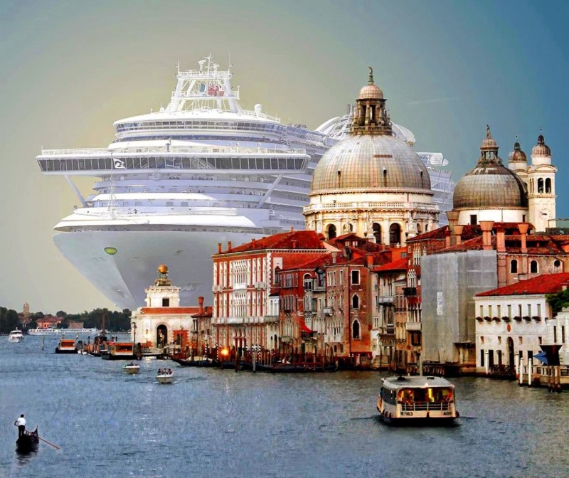 Громадный круизный лайнер MSC Magnifica длиной 293 метра заходит в порт Венеции