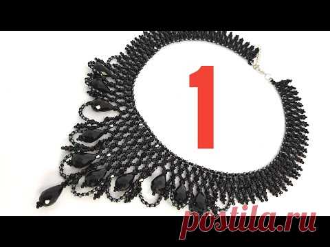 Beaded Necklace/Necklace/Beaded Black Necklace/Колье из бисера/Колье из бусин и бисера/Как сделать/1