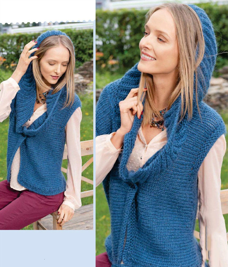 Синяя жилетка спицами с капюшоном - Портал рукоделия и моды