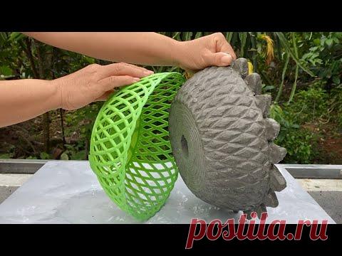 Creatve Unique Tree Pot From Cement and Plastic Baskets